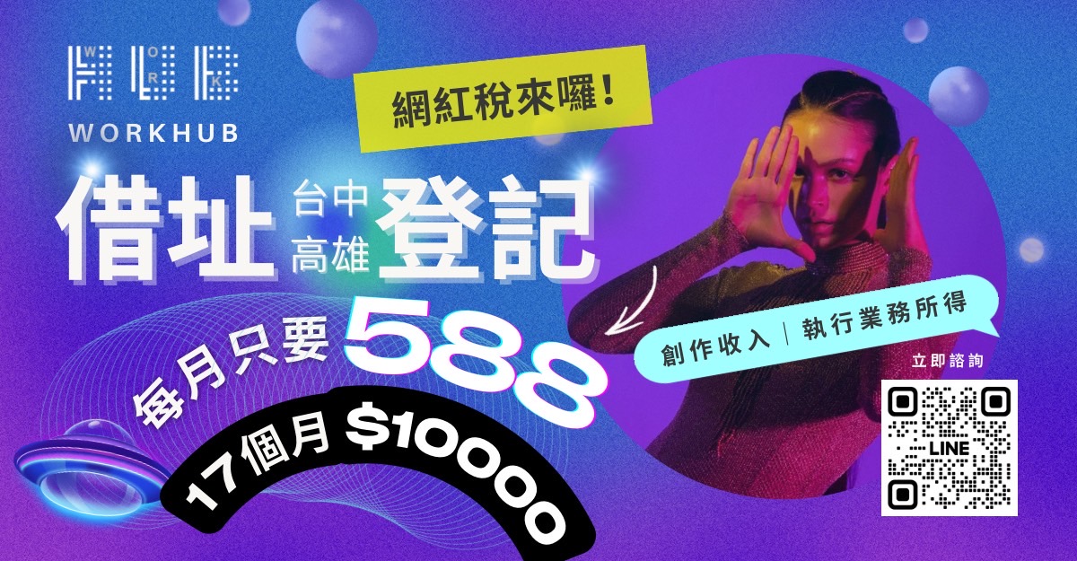 🚀 WORK HUB|創作者專屬的營業登記解決方案,全台統一優惠・月付只要 $588